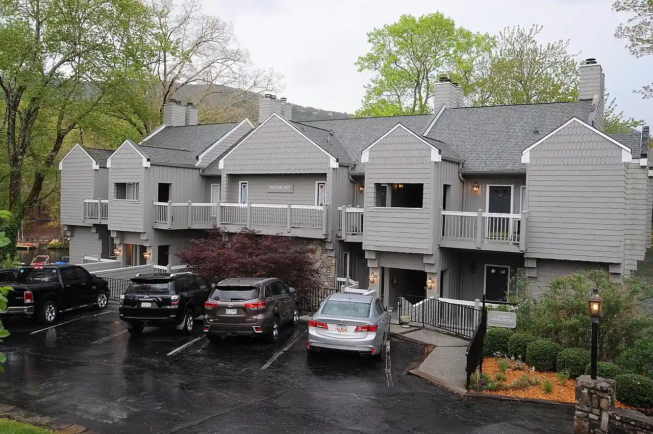 Hillmont, also known as the Armstrong-Moltz House and Greystone Inn, is a historic home located at Lake Toxaway, Transylvania County, North Carolina. It was built about 1915, and is a large -story, board and batten sheathed square block with two rambling stone additions. It features flower boxes on all windows, balconies, and casement windows, which give an impression of Swiss-chalet design. It was rehabilitated as the Greystone Inn in the mid-1980s. Read more on Wikipedia