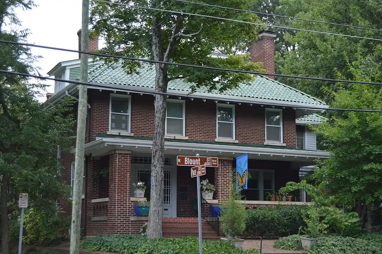 Dr. Hubert Benbury Haywood House is a historic home located at Raleigh, Wake County, North Carolina. It was built in 1916, and is a two-story, Prairie School-style brick dwelling with a green tile hipped roof and two-bay wide, one-bay deep, one-story brick sun porch. A two-story rear ell was added in 1928. The interior has Colonial Revival style design elements. Read more on Wikipedia
