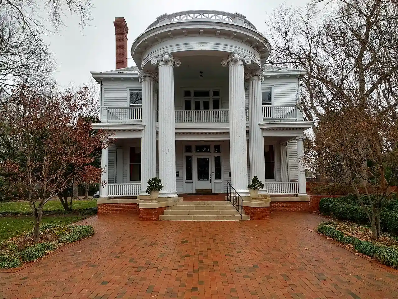 Garland Scott and Toler Moore Tucker House is a historic home located in the Oakwood neighborhood of Raleigh, North Carolina. It is located in the Oakwood Historic District. The house was built in 1914, and is a two-story, Southern Colonial Revival style frame dwelling with rear wings and porches. It has a brick foundation, weatherboard siding, and a slate-covered hipped roof. The front facade features a monumental rounded double-height porch, with four enormous fluted Ionic order columns. It was moved from its original located at 420 North Blount Street to 418 North Person Street, in 1974. Read more on Wikipedia