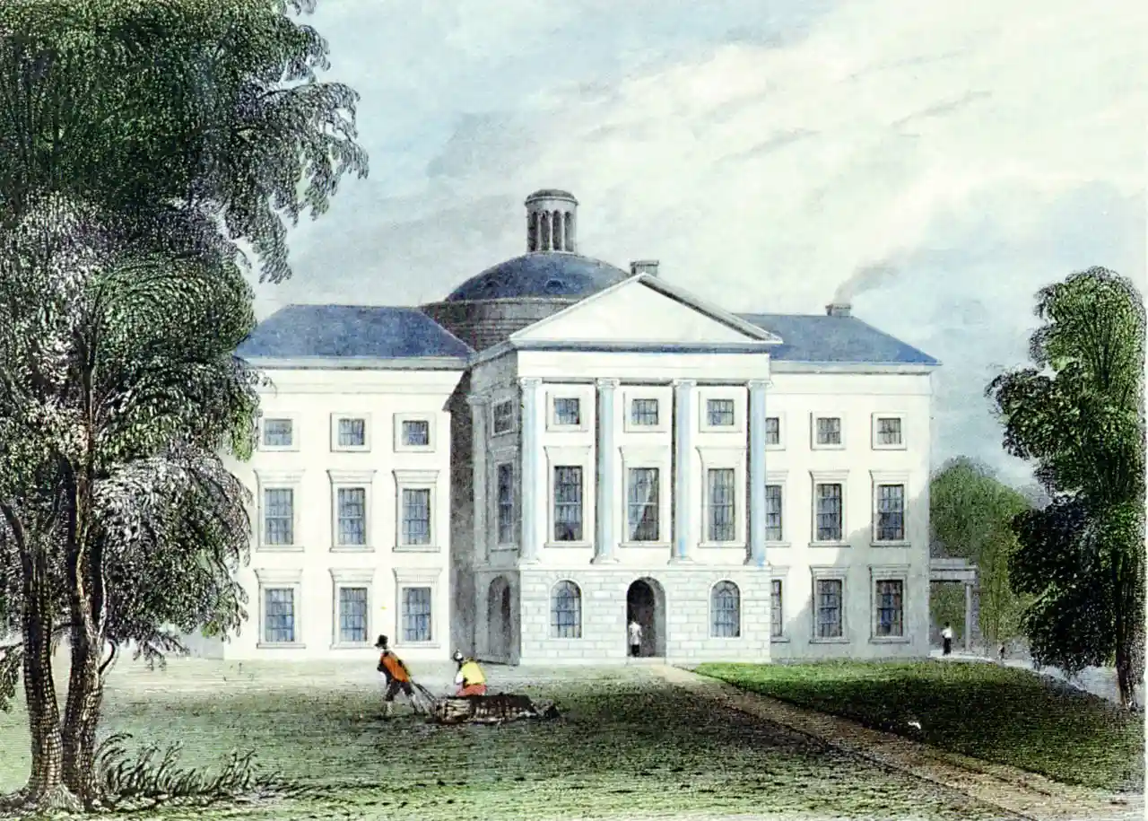 The North Carolina State House was built from 1792 to 1796 as the state capitol for North Carolina. It was located at Union Square in the state capital, Raleigh, in Wake County. The building was extensively renovated in the neoclassical style by William Nichols, the state architect, from 1820 to 1824. On December 24, 1821, the statue of George Washington by Antonio Canova was displayed in the rotunda. Both were destroyed by fire in 1831. Read more on Wikipedia