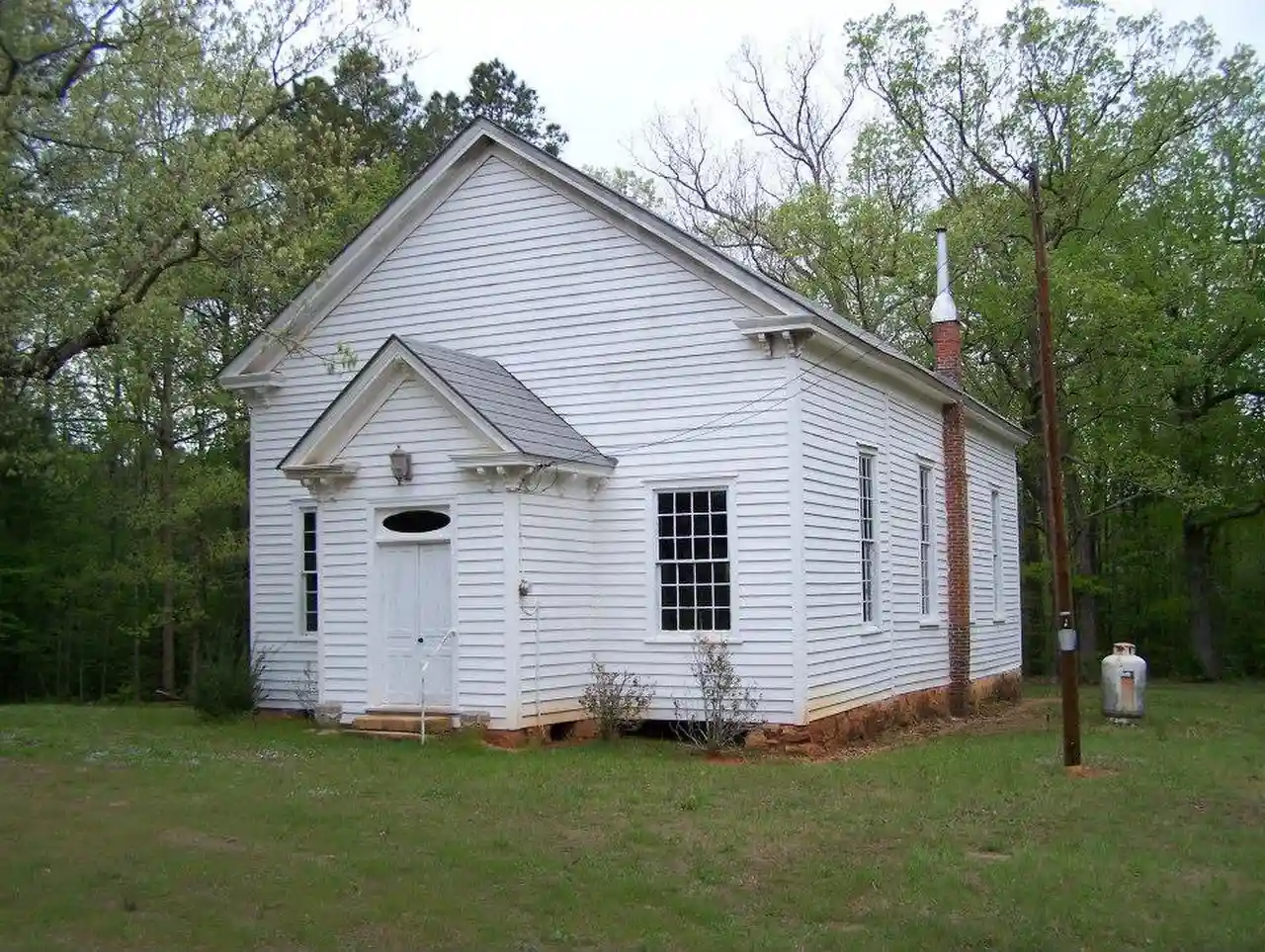 Hebron Methodist Church is a historic Methodist church located near Oakville, Warren County, North Carolina. It was built about 1848–1849, and is a one-story, three bay by three bay, Greek Revival style frame church. It has a gable roof and rests on a stone foundation. It was enlarged in 1886. The building is attributed to local builder Jacob W. Holt (1811-1880). Read more on Wikipedia