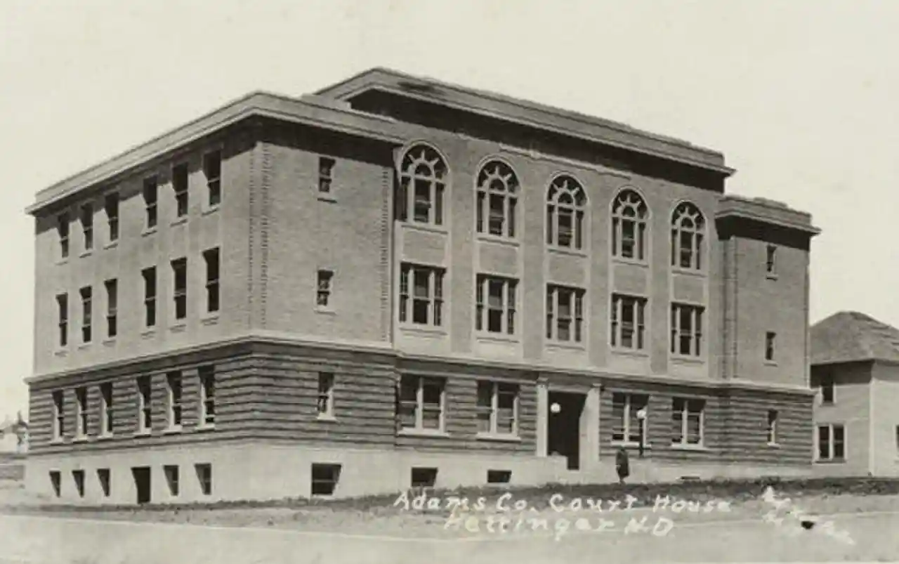 The Adams County Courthouse is a three-story brick courthouse building in Hettinger, North Dakota. Built in 1928, it was designed by Ira Rush, an architect who won competitions for design of several other courthouses in the state. The design of this one had elements of Art Deco, but appears to have been limited by budget to a more economical design. (pages 11-12 in ND Courthouses TR) and Read more on Wikipedia