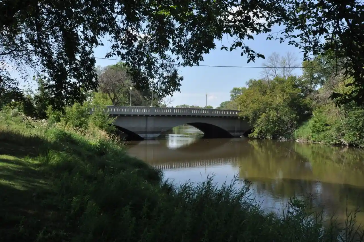 The West Park Bridge across the Sheyenne River in Valley City, North Dakota is a concrete false arch structure that was built in 2007. Together with the corresponding East Park Bridge, it brings Valley City's 4th Street across an oxbow of the Sheyenne River. The bridge is a sympathetic replacement for a historic bridge, built in 1924, that was listed on the National Register of Historic Places in 1997. Read more on Wikipedia