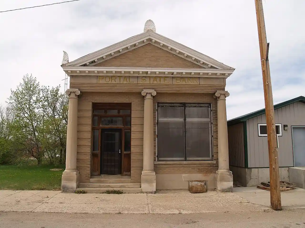 The Portal State Bank on Main St. in Portal, North Dakota, United States, was built in 1903 in Classical Revival architecture. Also known as the Union Bank of Portal, it was listed on the National Register of Historic Places in 1996. Read more on Wikipedia