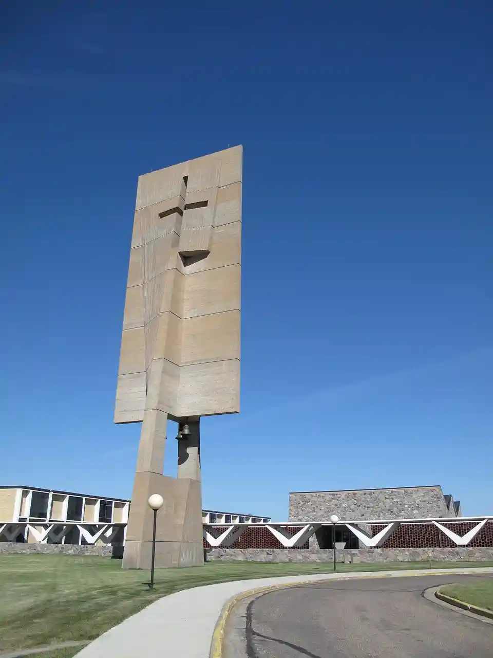 Annunciation Monastery is a Benedictine monastery in Bismarck, North Dakota, USA associated with the University of Mary. The monastery's building was designed by noted modernist architect Marcel Breuer and constructed from 1959 to 1963. The project features a tall bell banner which is similar to the one constructed by Breuer at Saint John's Abbey, Collegeville. Read more on Wikipedia