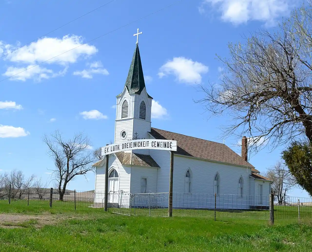 Evangelisch Lutheraner Dreieinigkeit Gemeinde, or Evangelical Lutheran Trinity Church is near New Leipzig, North Dakota. It has also been known as Trinity Heupel Church and as Heupel Church. The church building was listed on the National Register of Historic Places (NRHP) in 2009 Read more on Wikipedia