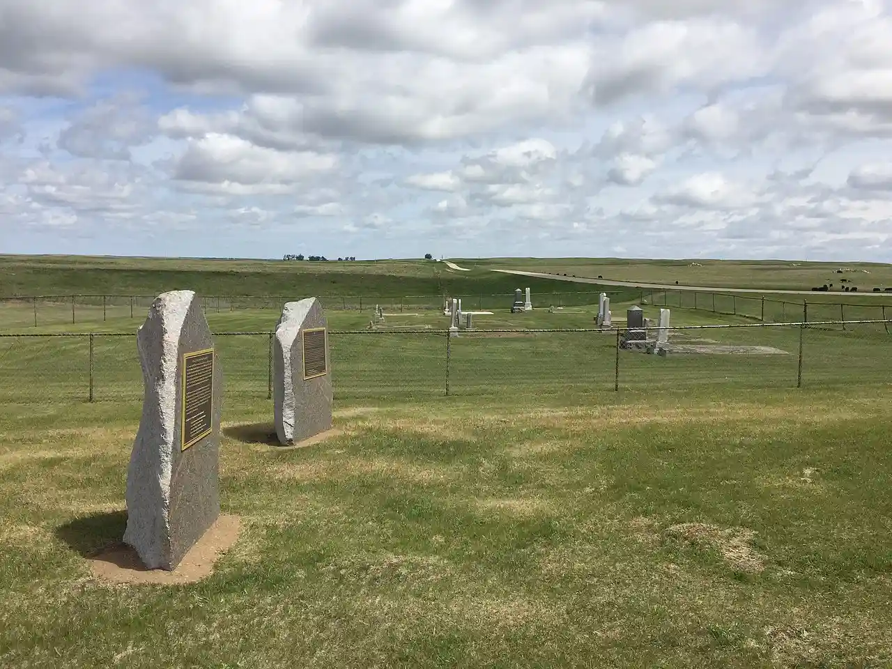 The Ashley Jewish Homesteaders Cemetery is an early 20th century burial site near Ashley, North Dakota. The Russian and Romanian Jews who farmed the area beginning in 1905 arrived as refugees fleeing pogroms and persecution. They had never farmed before, due to restrictions against Jews owning land in their native countries. Despite this lack of experience and the many rocks and boulders that peppered their claims, with the assistance of their German-Russian neighbors, and hard work and persistence, the great majority of them were successful enough to buy their land outright prior to the five-year waiting period contained within the Homestead Act of 1862, or to own their land at the five year mark. Read more on Wikipedia