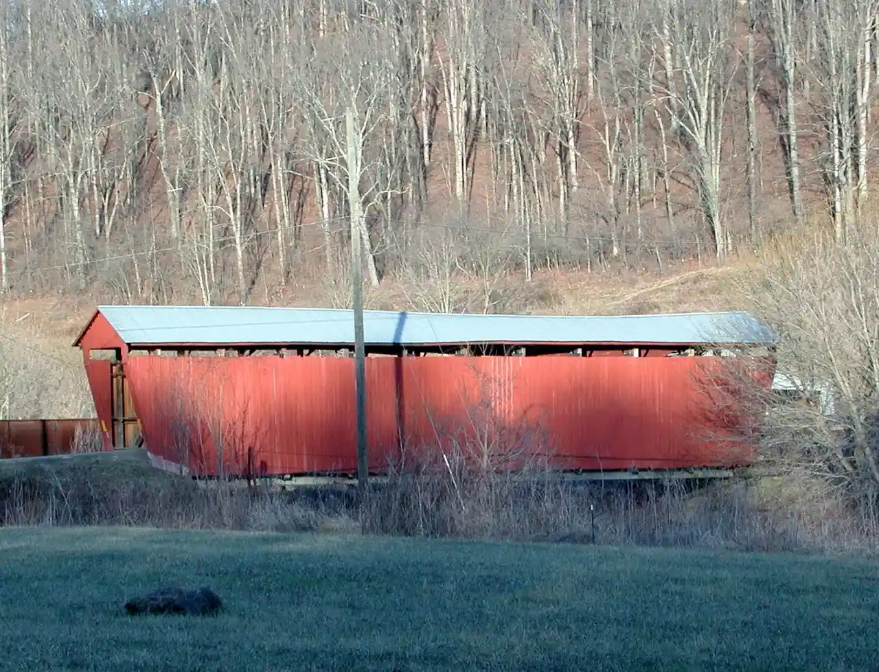 The Palos Covered Bridge, in Athens County, Ohio near Glouster, was listed on the National Register of Historic Places in 1977. It is a multiple kingpost truss covered bridge. Read more on Wikipedia