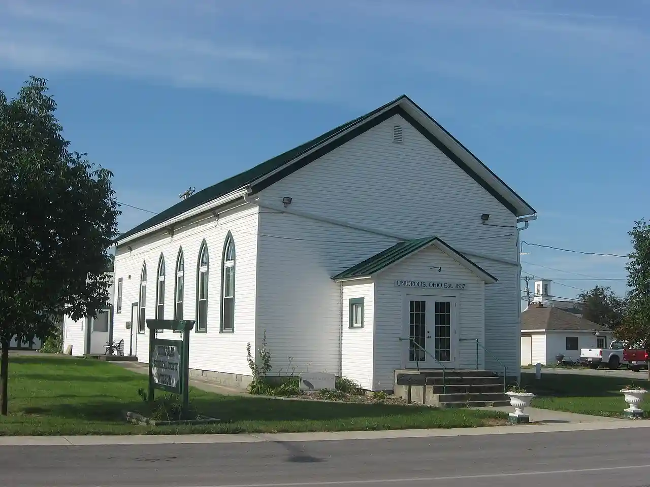 The Uniopolis Town Hall is a historic village hall and museum in Uniopolis, Ohio, United States. Built in 1875,What to See, Auglaize County Historical Society, 2010. Accessed 2010-06-07. this Gothic Revival structure was built as a church, the Divinity Church of the United Brethren in Christ. The building ceased to be used for this purpose in 1900, when it was purchased by the village of Uniopolis and converted into a village hall. After more than ninety years of service as a village hall, the building began a process of conversion into the museum of the Uniopolis Historical Society. Read more on Wikipedia