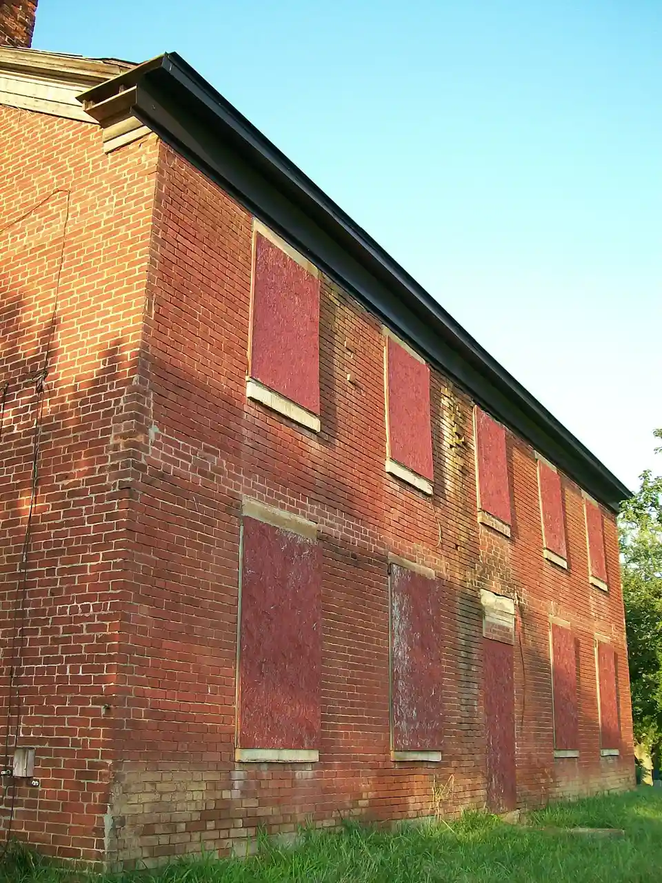 The Brick Tavern House is a former inn on the National Road west of St. Clairsville, Ohio, United States. One of the oldest National Road taverns still in existence, it was built in the early nineteenth century. Although it fell into dilapidation during the late twentieth century, it was named a historic site in 1995, and extensive restoration was to be performed in the early 2010s but to date, has not been. Read more on Wikipedia