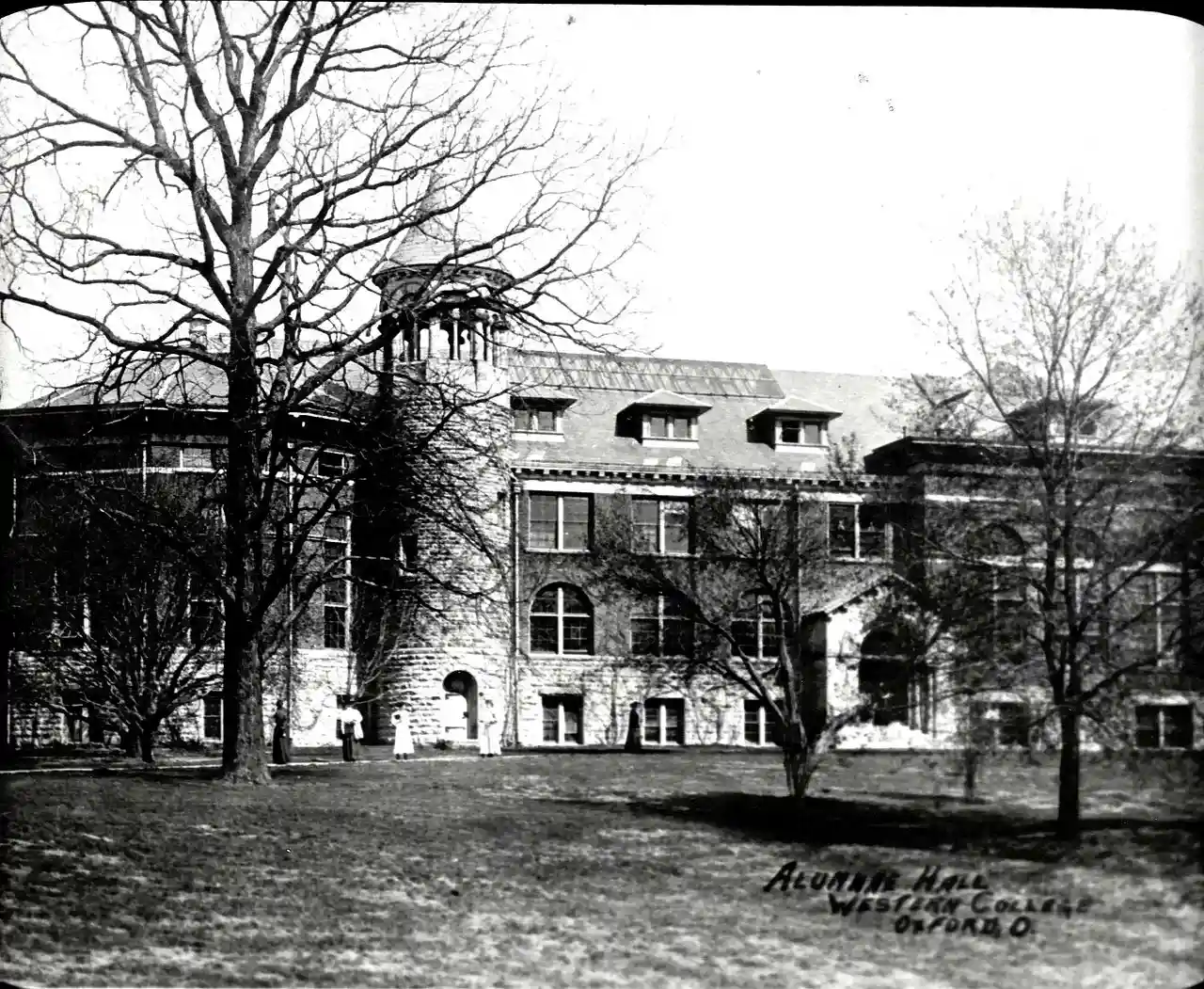 Alumnae Hall was the second building to be built on The Western Female Seminary's campus, and was completed in 1892. The building was constructed from funds donated by Olivia Meily Brice (Mrs. Calvin S. Brice), class of 1866, and other alumnae, trustees, and friends of the college. The architecture style of the building was Romanesque Revival. The building remained in use as a library until 1970 when Hoyt Hall opened. Between 1972-1974 it was used as a student center. It was torn down in 1977. Read more on Wikipedia