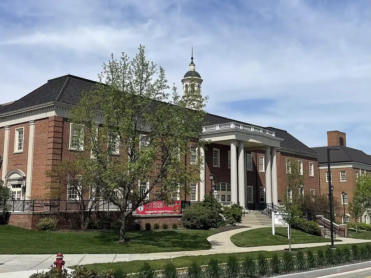 Benton Hall, built in 1907~1908 as an administration building, dedicated in 1909, was used as such until the new Administration Building was completed in 1956. It housed the music department, and the auditorium seating 1200 was used for small group meetings as it can accommodate only a fraction of the present enrollment, and total Miami meeting. Currently, Hall Auditorium houses the College of Engineering and Computing office as well as the Computer Science and Software Engineering department. Read more on Wikipedia