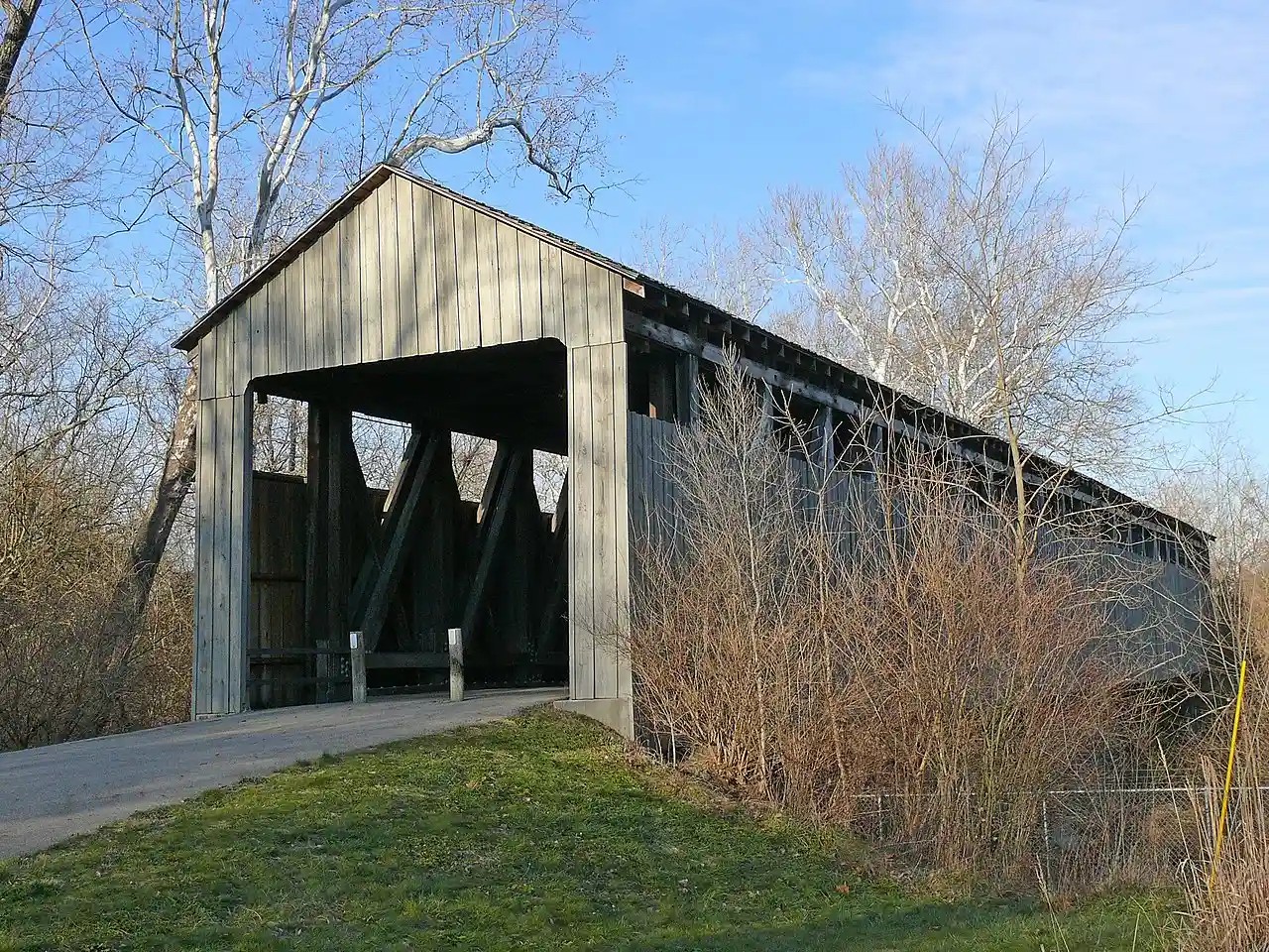 Pugh's Mill Covered Bridge is a registered historic structure near Oxford, Ohio, listed in the National Register on 1975-06-05. This wooden bridge was built in 1869 over Four Mile (Talawanda) Creek and is one of two remaining covered bridges in Butler County, Ohio. The other is the Bebb Park or State Line covered bridge built in 1868. Black-Pugh's Mill Covered Bridge Read more on Wikipedia