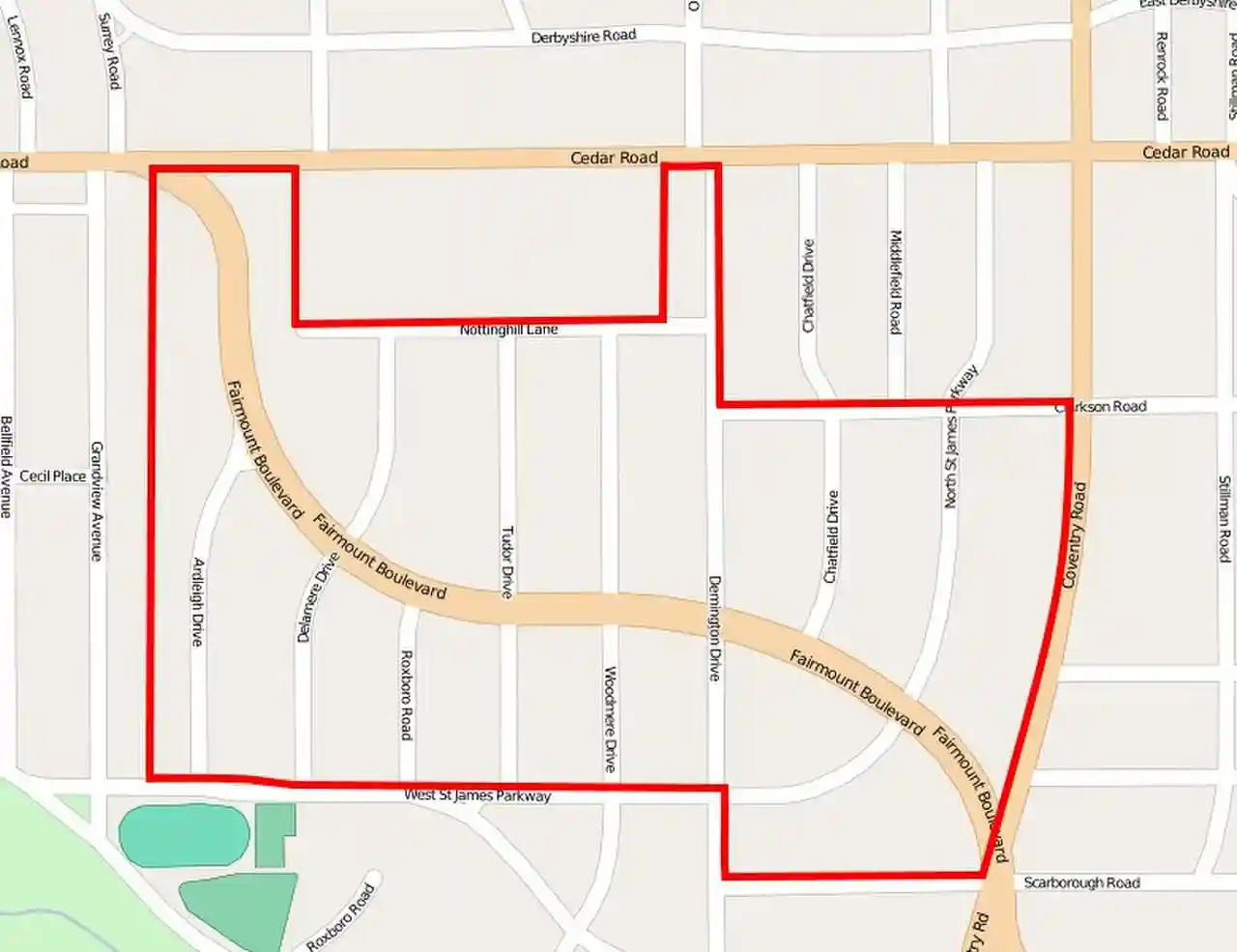 The Euclid Golf Allotment, also known as the Euclid Golf Historic District, is a historic district located in Cleveland Heights, Ohio, in the United States. Roughly bounded by Cedar Road, Coventry Road, West St. James Parkway, and Ardleigh Drive, the site contains primarily residential homes built between 1913 and 1929. The historic district is built on land formerly owned by John D. Rockefeller and at one time leased to the Euclid Golf Club for its back nine holes, and it takes its name from this historic factoid. The Euclid Golf Allotment is a largely undisturbed example of an early 20th century planned community containing American Craftsman, Colonial Revival, French Renaissance Revival, Italian Renaissance Revival, Prairie School, Shingle Style, and Tudor Revival architecture. Read more on Wikipedia