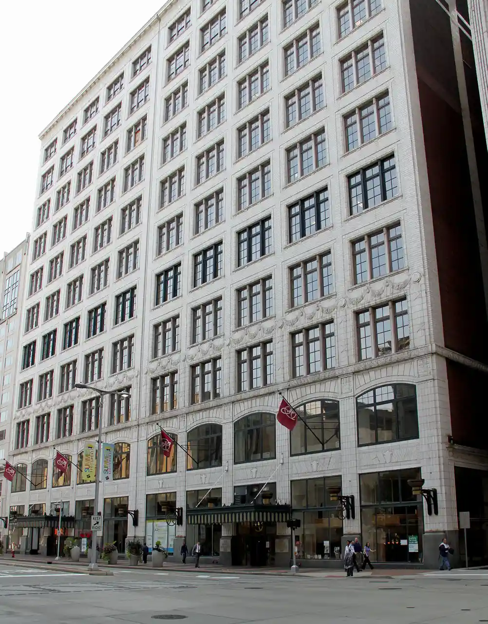 The Halle Building, formerly known as the Pope Building and after 2014 as The Residences at Halle, is an 11-story Chicago School mixed-use structure located in the Downtown Cleveland central business district in Cleveland, Ohio, in the United States. Designed by architect Henry Bacon, the building was the flagship department store of the Halle Brothers Co. from 1910 to 1982. Read more on Wikipedia