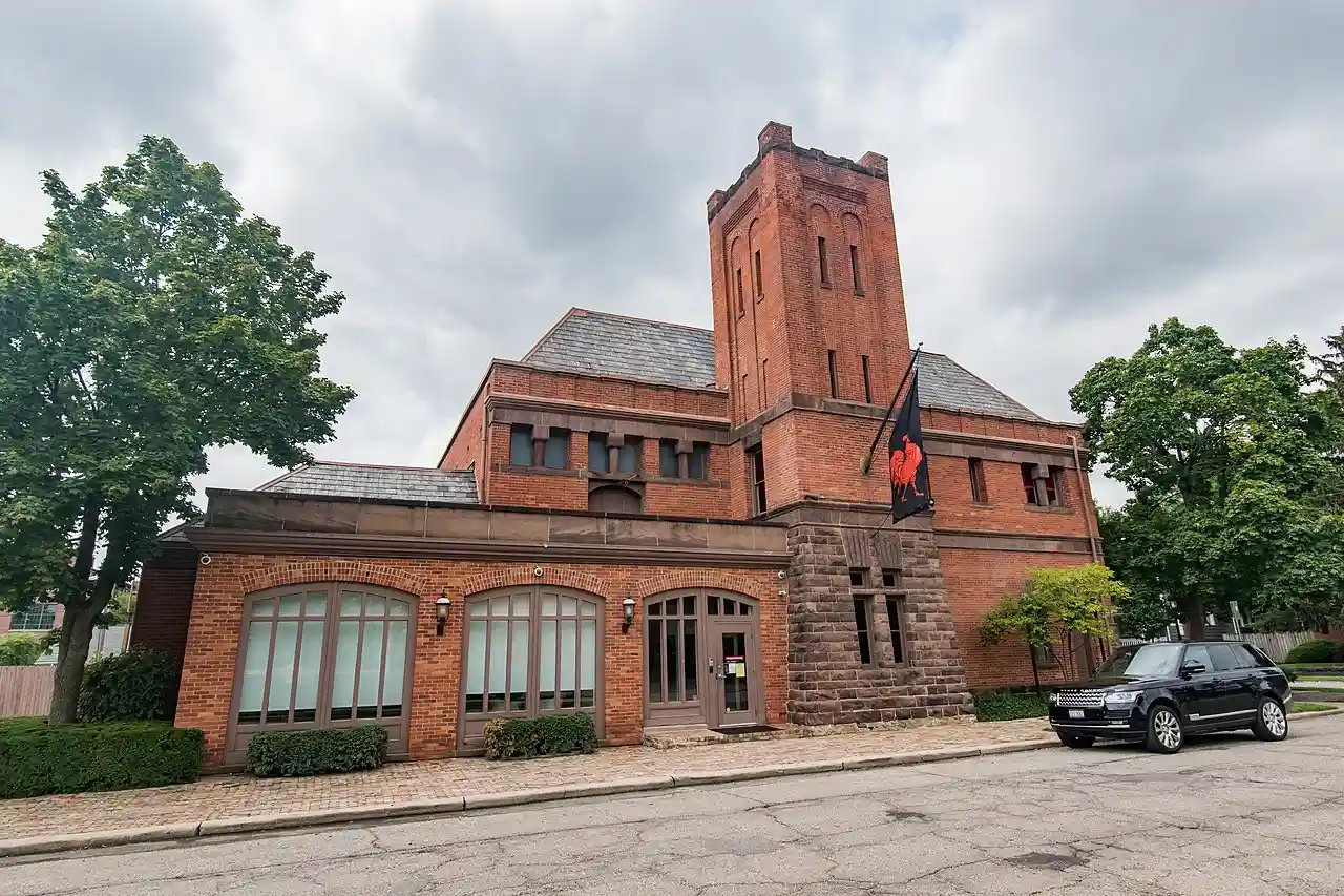 Engine House No. 5 is a former Columbus Fire Department station in the German Village neighborhood of Columbus, Ohio. The building was constructed in 1894, designed in the Richardsonian Romanesque style by John Flynn. The station was decommissioned in 1968. From 1974 to 2002, the space was used for a restaurant and bar, also known as Engine House No. 5. In 2004, the building was converted for office use, and today is the Columbus branch of Big Red Rooster, a marketing company. Read more on Wikipedia
