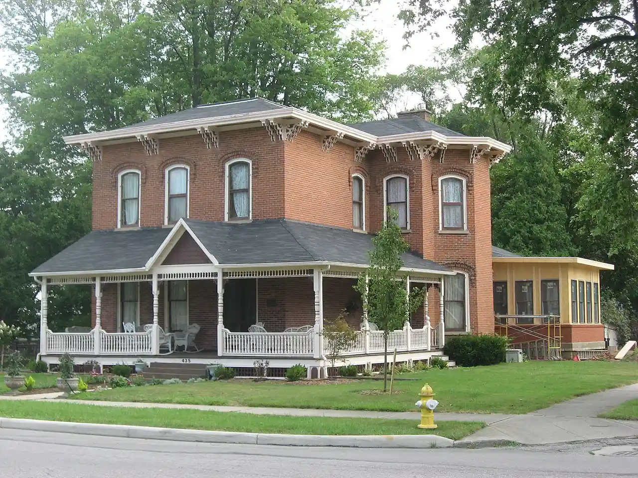 The Jones–Read–Touvelle House is a historic building in Wauseon, Ohio, United States. Located along Park Street south of downtown, this ornate brick house sits on a corner lot adjacent to a city park. Architectural historians have seen the Jones–Read–Touvelle House as a fine example of the combination of multiple architectural styles: most of the house itself appears to be Italianate, but the porch and some of the other details are plainly those of the Queen Anne style.Owen, Lorrie K., ed. Dictionary of Ohio Historic Places. Vol. 1. St. Clair Shores: Somerset, 1999, 523–524. Read more on Wikipedia