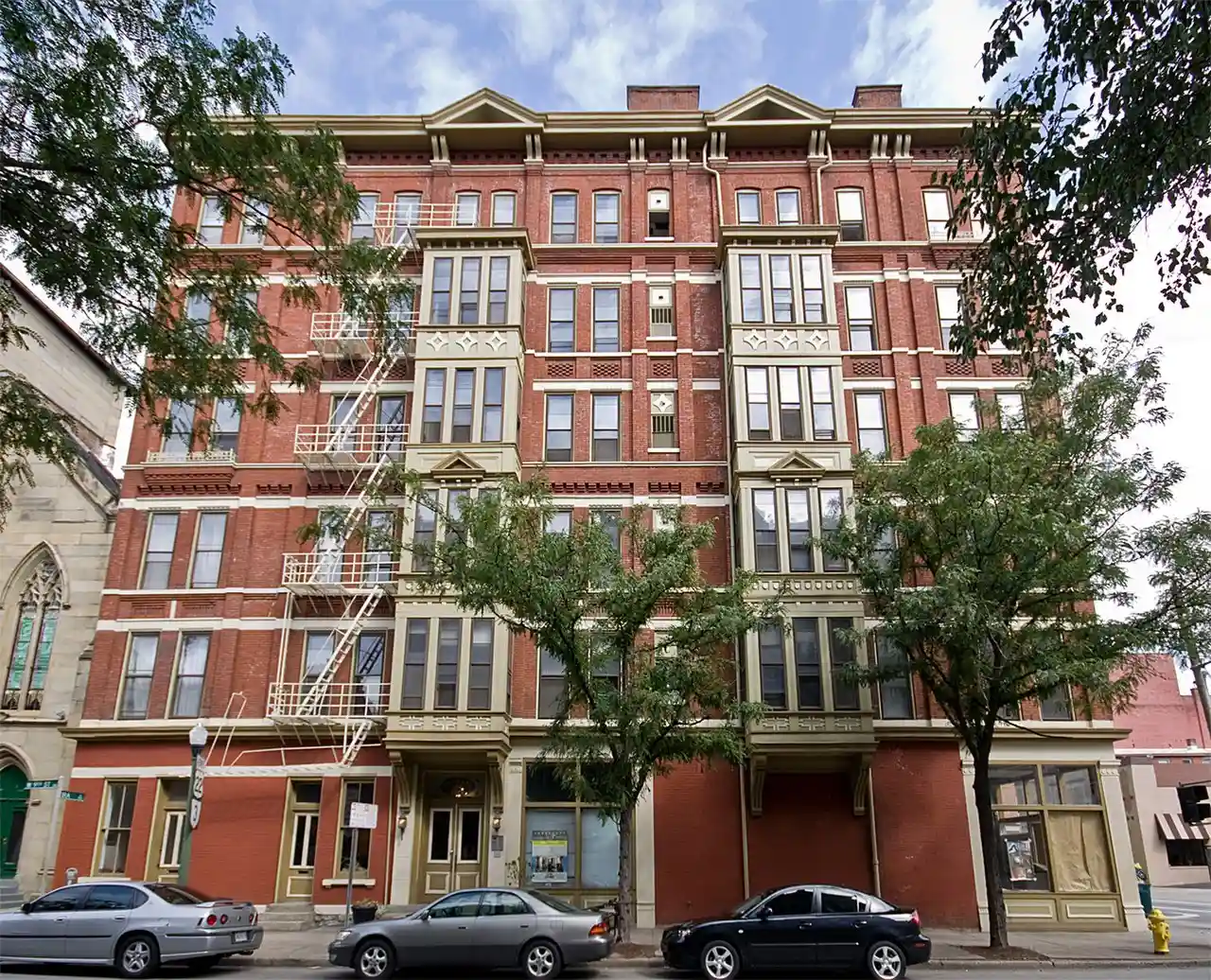 The Brittany Apartment Building is a historic apartment building in downtown Cincinnati, Ohio, United States. A Queen Anne structure constructed in 1885, it is a six-story rectangular structure with a flat roof,Owen, Lorrie K., ed. Dictionary of Ohio Historic Places. Vol. 1. St. Clair Shores: Somerset, 1999, 568. built with brick walls and elements of wood and sandstone., Ohio Historical Society, 2007. Accessed 2010-10-04. It was built by the firm of Thomas Emery's Sons,Gordon, Stephen C., and Elisabeth H. Tuttle. . National Park Service, 1978-12-11. Accessed 2010-10-04. Cincinnati's leading real estate developers during the 1880s. It is one of four large apartment complexes erected by the Emerys during the 1880s; only the Brittany and the Lombardy Apartment Buildings have endured to the present day. Both the Lombardy and the Brittany were built in 1885 according to designs by Samuel Hannaford; at that time, his independent architectural practice was gaining great prominence in the Cincinnati metropolitan area. Read more on Wikipedia