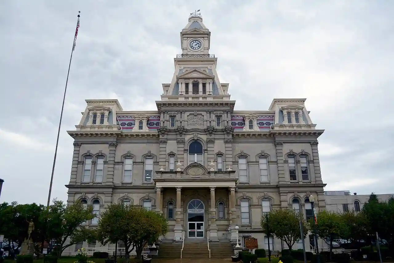 The Muskingum County Courthouse is a historic building in Zanesville, Ohio. It was designed by T.B. Townsend and H. E. Myer, and built in 1870 with stone, brick, and slate in the Second Empire architecture style. The building is listed on the National Register of Historic Places and is located at 4th and Main Streets.Muskingum County Courthouse And Jail Archiplanet Read more on Wikipedia