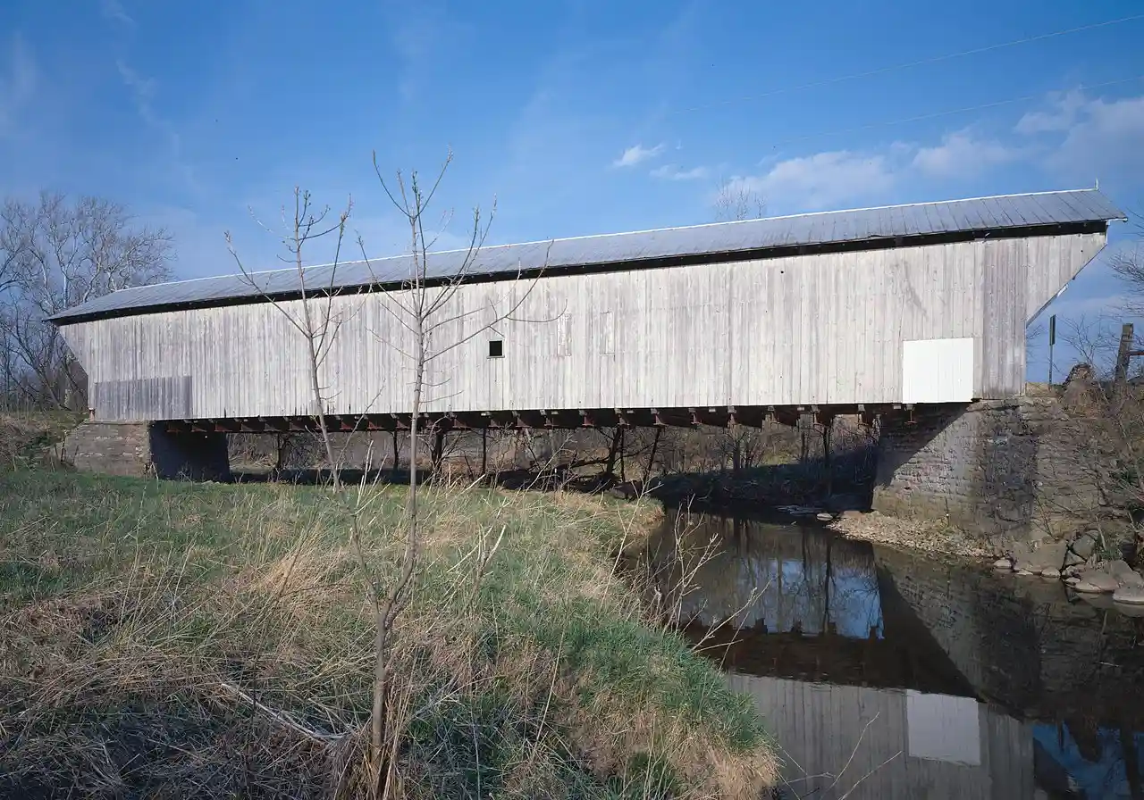 The Harshman Covered Bridge near Fairhaven, Ohio, was built in 1894 by Everett S. Sherman. It was listed on the National Register of Historic Places in 1976. It was documented by the Historic American Engineering Record (HAER) in 2003. Read more on Wikipedia
