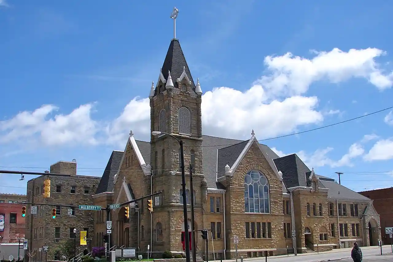 First English Lutheran Church is a historic church in Mansfield, Ohio. The cornerstone of the church was laid in September 1891 and the building itself was dedicated for use in 1894. The building was added to the National Register of Historic Places in 1983. Read more on Wikipedia