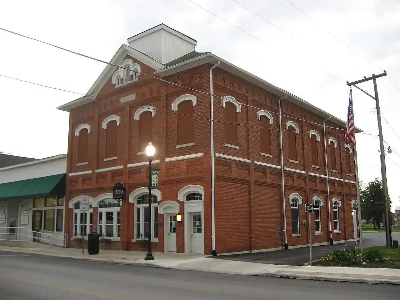 The Anna Town Hall is a historic brick town hall in Anna, Ohio, United States. Built in 1880, it originally included space for the village offices, a jail, a fire station, and a community theater. The building's brick architecture presents a stark contrast to the majority of buildings in the village, which includes primarily frame structures.Owen, Lorrie K., ed. Dictionary of Ohio Historic Places. Vol. 2. St. Clair Shores: Somerset, 1999, 1271. Read more on Wikipedia