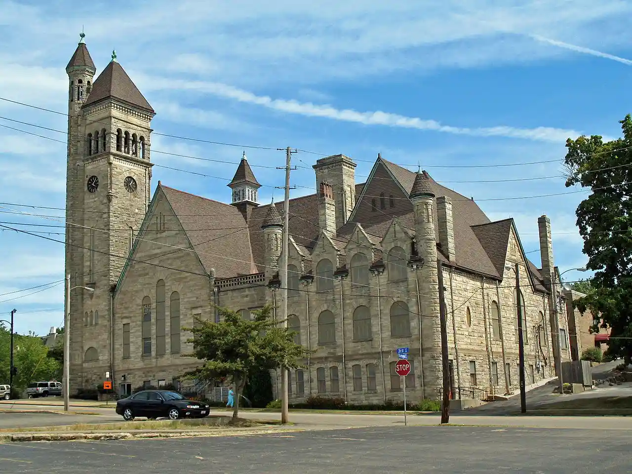 First Methodist Episcopal Church (now known as First United Methodist Church) is a historic church in Massillon, Ohio, United States, located at 301 Lincoln Way East. It is of stone and sandstone construction with a copper roof in the Richardsonian Romanesque style. The building was dedicated in June 1895 and was added to the U.S. National Register of Historic Places on August 22, 1985. Read more on Wikipedia