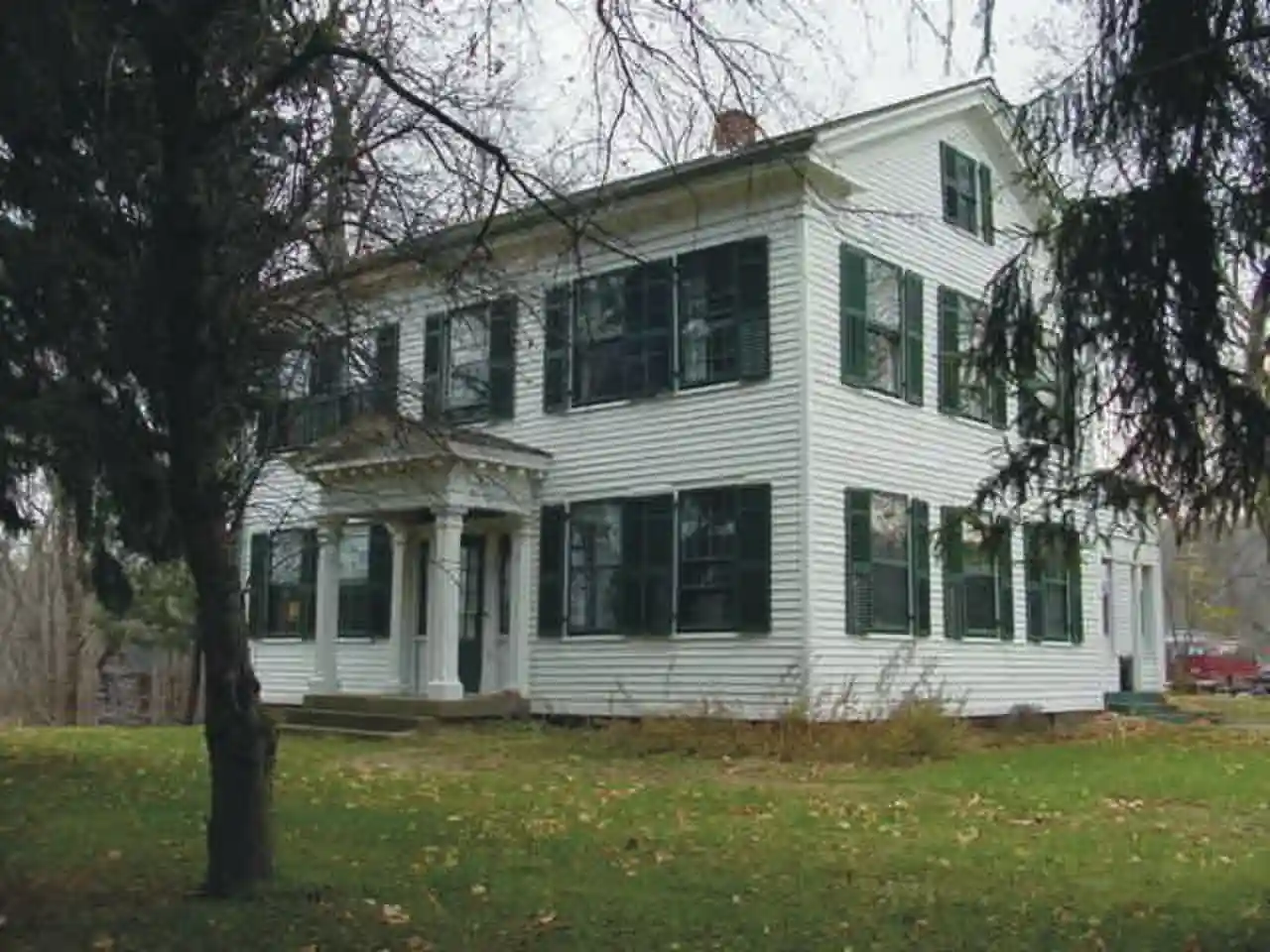 The George Stanford Farm is a historic farm at 6093 Stanford Road in Boston Township, Ohio, within the boundaries of Cuyahoga Valley National Park. The farm, which overlooks the Cuyahoga River and Ohio and Erie Canal, was settled in 1806 by James and Polly Stanford and their children. Their son George built the main farmhouse circa 1830. The Stanford family played an important role in the history of Boston Township; James reportedly suggested its name, and both George and his son George C. held government offices in the township. The farmhouse has a Greek Revival design with a pedimented front porch supported by Greek columns, pilasters flanking the entrance, six-over-six windows, and a gable roof with a box cornice. The property also includes a barn, a springhouse, a garage, a smoke house, a chicken coop, and a corn crib. Read more on Wikipedia