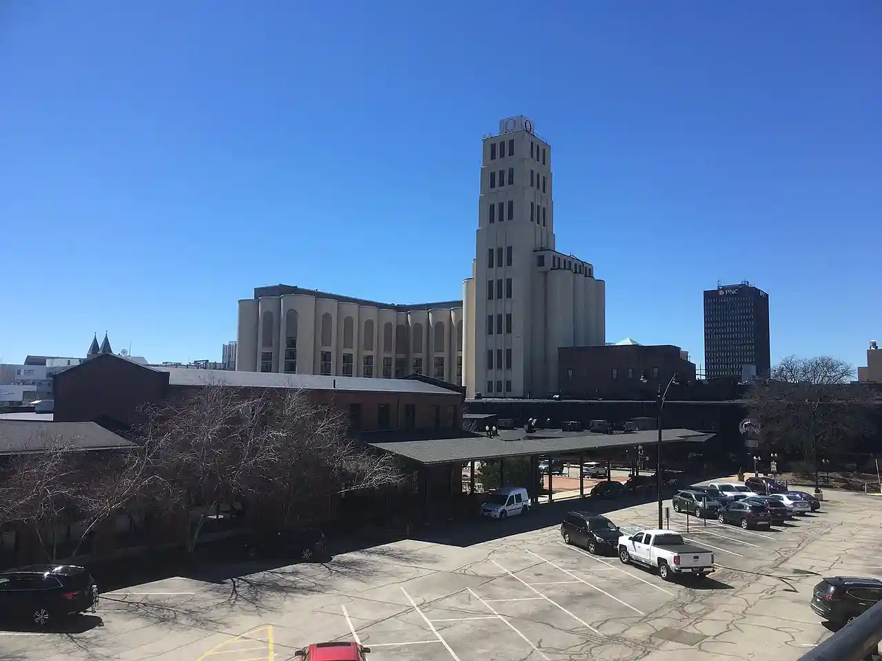 Quaker Square was a shopping and dining complex located in downtown Akron, Ohio which is now used by the University of Akron. Quaker Square was the original Quaker Oats factory; the complex consists of the former mill, factory, and silos. The buildings were bought in the early 1970s by developers who sought to create a unique, useful home for shops and restaurants. The buildings were bought by the University of Akron in 2007. The hotel has been converted to a residence hall. The retail space consisted of dozens of small shops and restaurants, and there were large areas of historic exhibits on such areas as the local Quaker industry and history of radio in Akron, while offices were on the floors above. Quaker Square was open to the general public until September 18, 2015. After that, the hotel no longer accepted reservations as the former hotel rooms and the entire complex began to be operated exclusively for student and university use. The University fully vacated the facility by 2022. Read more on Wikipedia