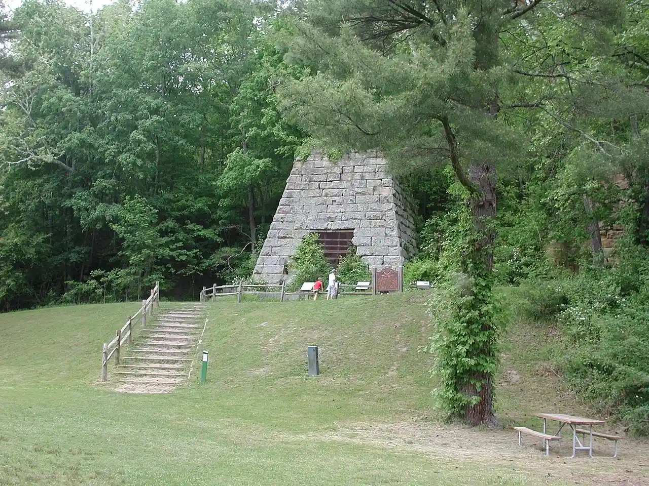 The Hope Furnace is a historic blast furnace in the southeastern part of the U.S. state of Ohio. Located along State Route 278, approximately northeast of the village of Zaleski, it is one of two extant iron furnaces in Vinton County. Between 1854 and 1874, the furnace was used to smelt iron ore, using coal or charcoal for fuel. It is a rectangular structure, built of sandstone and shaped like a truncated pyramid.Owen, Lorrie K., ed. Dictionary of Ohio Historic Places. Vol. 2. St. Clair Shores: Somerset, 1999, 1368. Read more on Wikipedia
