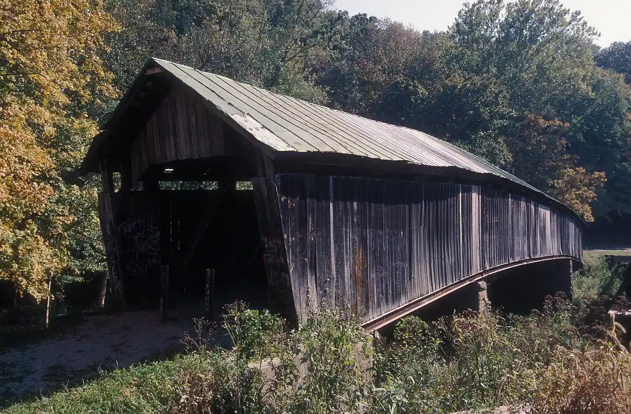 The Ponn Humpback Covered Bridge was a historic covered bridge in the southeastern part of the U.S. state of Ohio. Located near the village of Wilkesville in Vinton County, it bore a name derived from its unusual shape: the bridge was arched in the middle, rather than being flat like a typical covered bridge. Declared a historic site in the 1970s, the bridge had a history closely tied to arson — it was constructed to replace a bridge that had been burned intentionally, and it met its end at the hands of an arsonist. Read more on Wikipedia