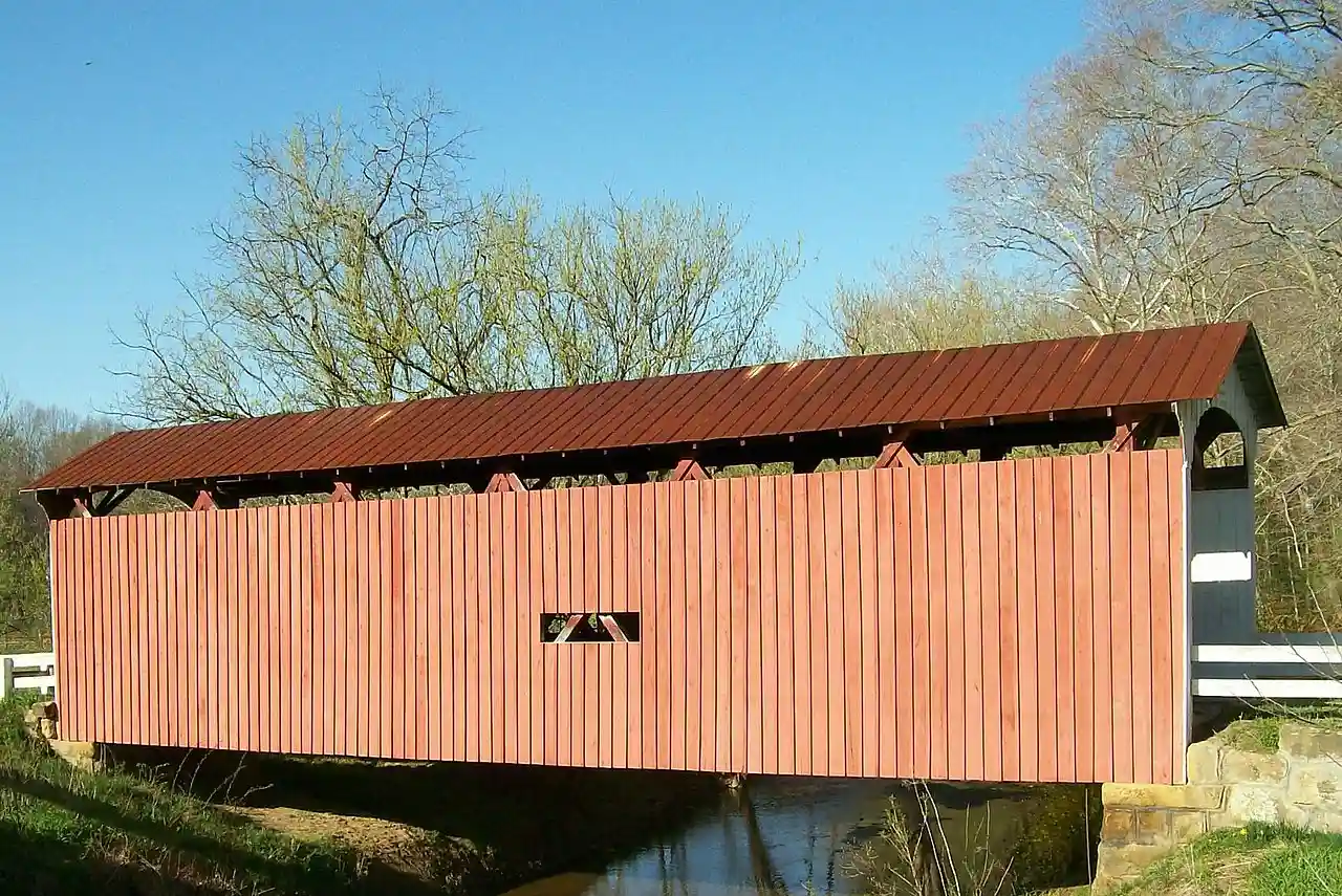 The Root Covered Bridge is a historic wooden covered bridge in the southeastern part of the U.S. state of Ohio. Located off State Route 555 in far northern Decatur Township, Washington County,DeLorme. Ohio Atlas & Gazetteer. 7th ed. Yarmouth: DeLorme, 2004, 81. . the bridge was built in 1878 in the Long truss mode of truss bridge construction. Measuring in its single span,Moore, Elma Lee. Ohio's Covered Bridges. Charleston: Arcadia, 2010, 117. it spans the West Branch of the Little Hocking River.Owen, Lorrie K., ed. Dictionary of Ohio Historic Places. Vol. 2. St. Clair Shores: Somerset, 1999. Read more on Wikipedia