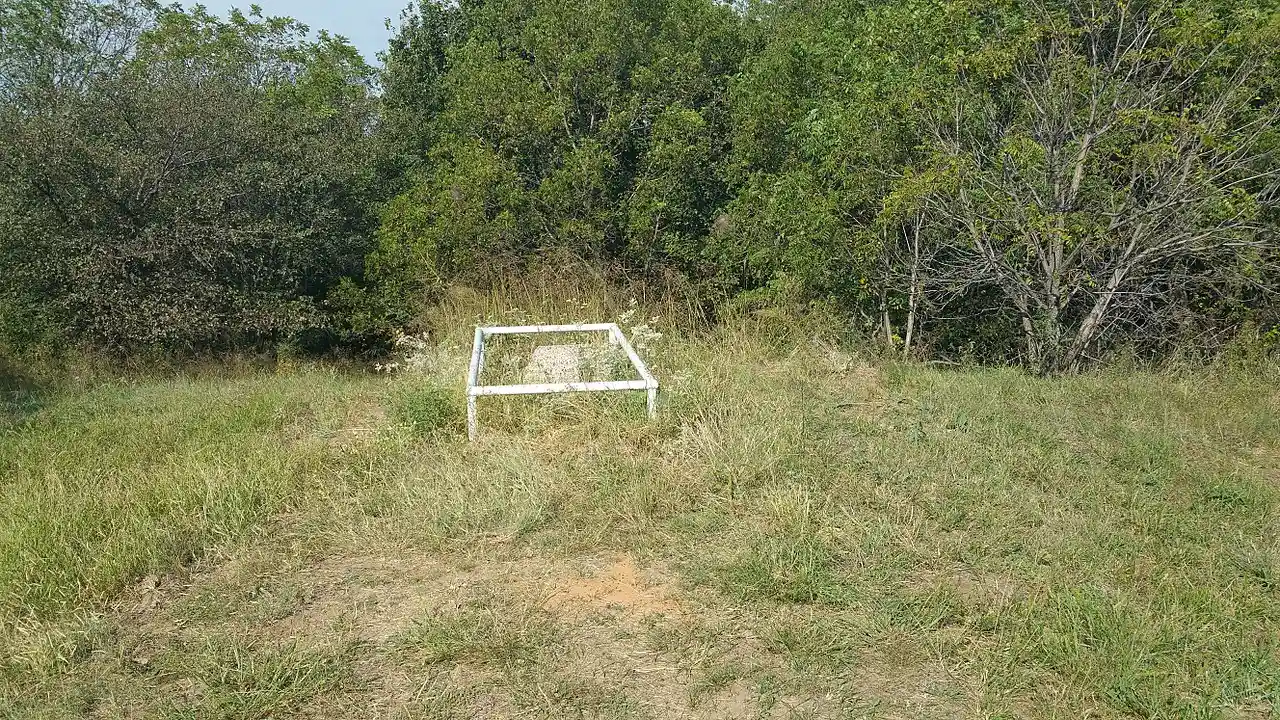 The Jesse Chisholm Grave Site is a commemorative site in rural Blaine County, Oklahoma. Located about north of Geary on the east side of the North Canadian River, the site is the accepted location of the burial of Jesse Chisholm (-1868), a well-known mixed-blood Cherokee trader for whom the Chisholm Trail is named. The site is also believed to include the burial site of Chief Left Hand, whose camp Chisholm was visiting at the time of his death. A nearby spring is named Left Hand Spring in the chief's honor. The site is a historical reminder of the friendship between the two men, who had an enduring friendship despite significant hostility between whites and Native Americans at the time. Read more on Wikipedia