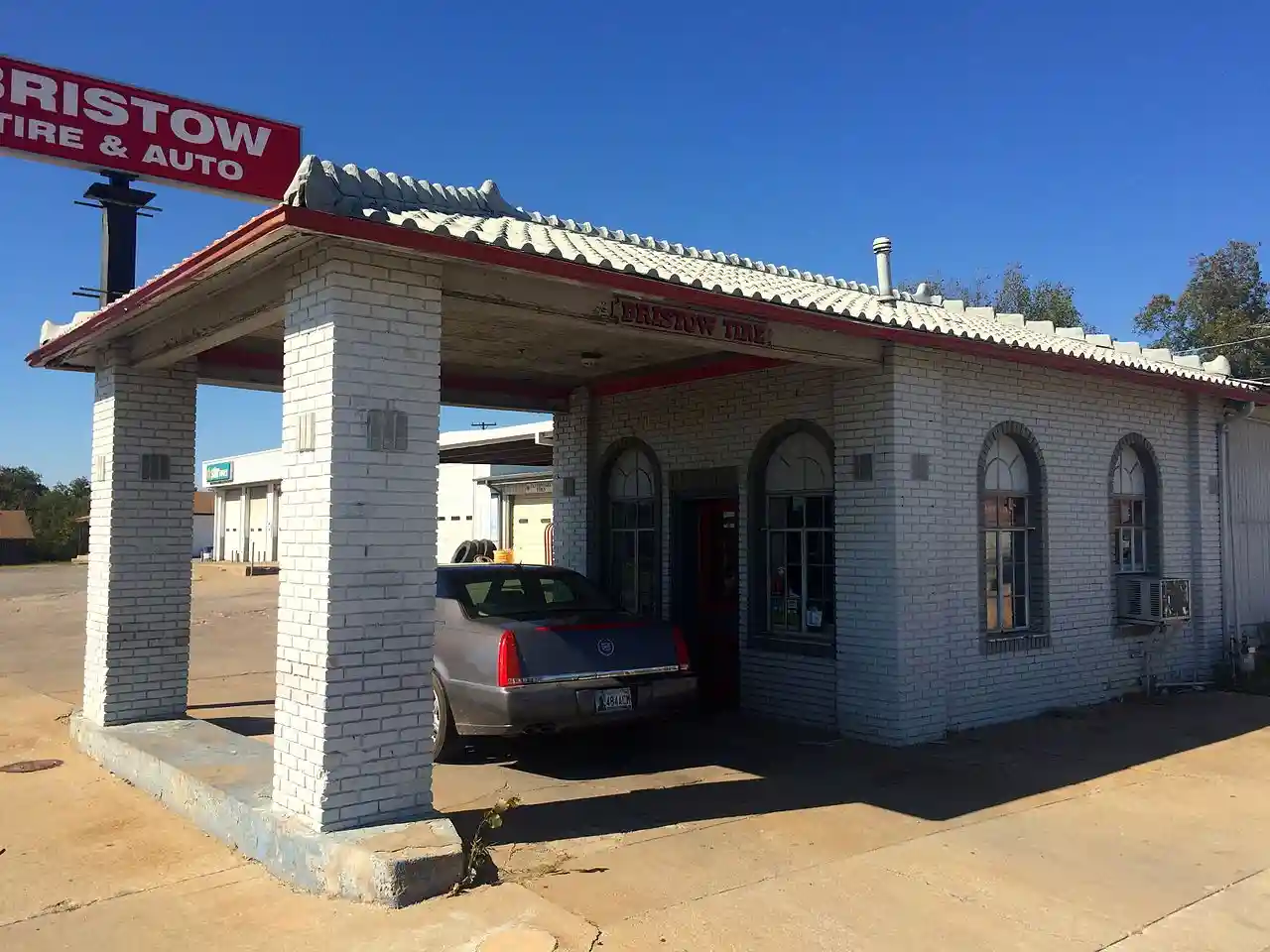 The Bristow Tire Shop, at 115 W. Fourth St. in Bristow, Oklahoma, was built in 1923. It was listed on the National Register of Historic Places in 1995. Read more on Wikipedia
