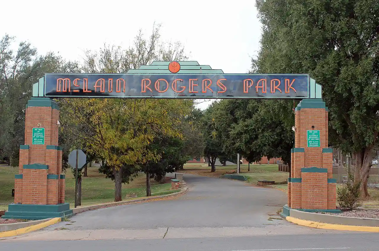 The McLain Rogers Park, in Clinton, Oklahoma, was built in 1934 and following years. It includes Art Deco architecture. It has also been known as Clinton City Park. It was listed on the National Register of Historic Places in 2004. The listing included four contributing buildings, nine contributing structures, and a contributing object. Read more on Wikipedia