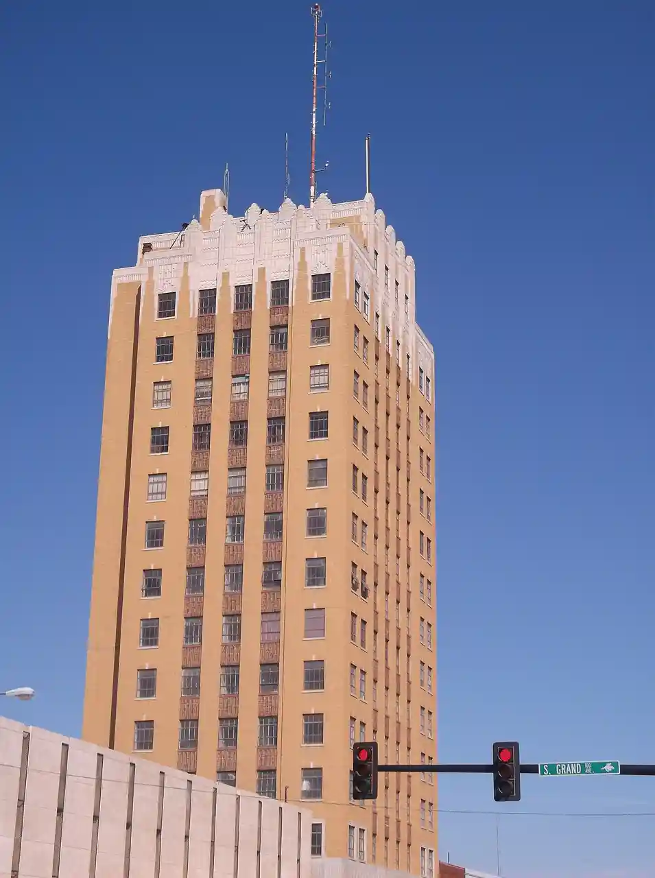 The Broadway Tower, located in the Enid Downtown Historic District in Enid, Oklahoma, was constructed in 1931 by McMillen and Shelton Construction Company. The Broadway Development Company hired George Ernst von Blumenauer of Enid, and the Oklahoma City firm Layton, Hicks, and Forsythe to design the building, in the Art Deco style. Read more on Wikipedia