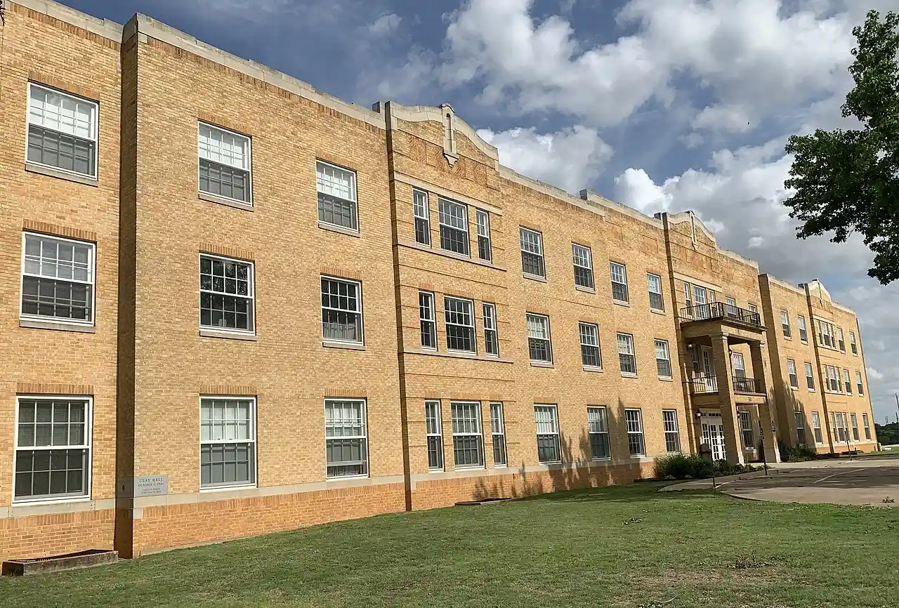 Clay Hall is a mid-twentieth century women's dormitory located on the campus of Northern Oklahoma College in Enid, Oklahoma that has been listed on the National Register of Historic Places since 2012. Architect Roy W. Shaw designed it for Phillips University in 1941. The building was named after Robert Henry Clay, the husband of Sadie Clay, who had given a $25,000 donation to the project. A cornerstone ceremony was held on October 9, 1941. Mefford construction had completed the exterior by 1942, and the interior was completed in 1946, having been delayed by the onset of World War II."Girls' Dormitory Ready at Phillips University", Amarillo Daily News, April 25, 1945 The dormitory cost $175,000 to build, and the University held a dedication ceremony on October 11, 1946. In 1951 and 1959, a north and a south wing were added to the building in order to accommodate an expanding student population. These additional wings increased Clay Hall's residential space from 150 women to 258,Nomination form for Clay Hall #12000346 and its building size to 59,000 square feet.Barron, Robert, "City commission sets special meeting on Clay Hall rezoning", Enid News & Eagle, June 28, 2011 Phillips University's enrollment peaked in the 1970s, and the dormitory closed briefly in 1985, was reopened in 1986, and then permanently shut down in 1987. Clay Hall is the oldest dormitory on the campus. Its predecessor, Athenian Hall, was demolished in 1952, and a men's dormitory, Earl Butts Hall, was completed in 1955. Read more on Wikipedia