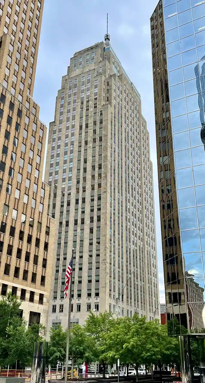 First National Center, formerly known as First National Bank Building, is a prominent mixed-use skyscraper in downtown Oklahoma City. The art deco tower is 406 feet (136 m) tall at the roof, and is 446 feet (150 m) at its spire and contains 33 floors. The building was constructed in 1931 at an original square footage of by the First National Bank and Trust Company of Oklahoma City. Additions in 1957 and 1972 brought the square footage to of office space before the 2022 restoration and remodeling reduced it to .https://www.scsengineers.com/wp-content/uploads/2017/03/FNC_ABCA.pdf Read more on Wikipedia