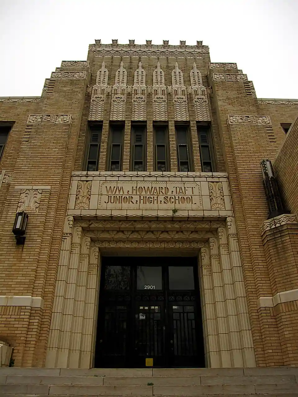Taft Middle School is a historic Oklahoma City school. It is listed on the National Register of Historic Places as Taft Junior High School. With At 2901 NW 23rd Street, the school's art deco-style building was designed by Layton, Hicks & Forsyth and built in 1930. The two-story building includes intricate brickwork, terra cotta, and cast stone adornments as well as friezes. It is constructed of yellow brick. Read more on Wikipedia