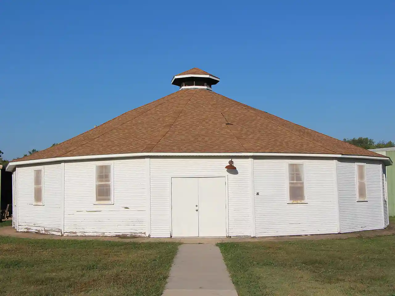 The Osage Round House (also known as the Zon-Zo-Li Road House) is a 16-sided structure used for Osage Ceremonial dances such as the Inlonska. It is the only such round house standing in Osage County, Oklahoma. Read more on Wikipedia