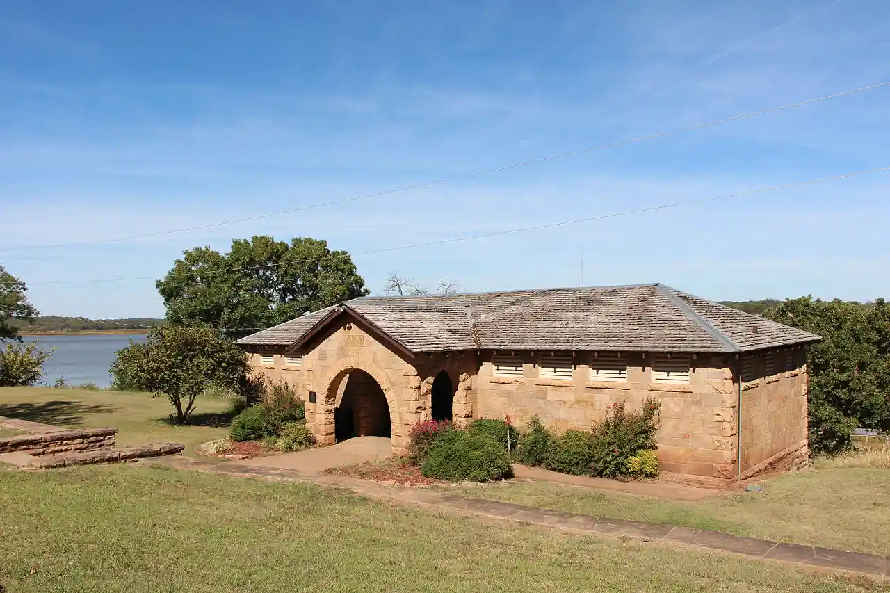 The Pawnee Municipal Swimming Pool and Bathhouse were erected by the Federal Emergency Relief Administration (FERA) and the Works Progress Administration (WPA) in the 1930s. The swimming pool, built in 1937, covers three acres. The Bathhouse was constructed in 1939 of native stone. The west side of the bathhouse is one-story and is typical of WPA-built buildings in the state, while the east side is two-story and more elaborate. Read more on Wikipedia