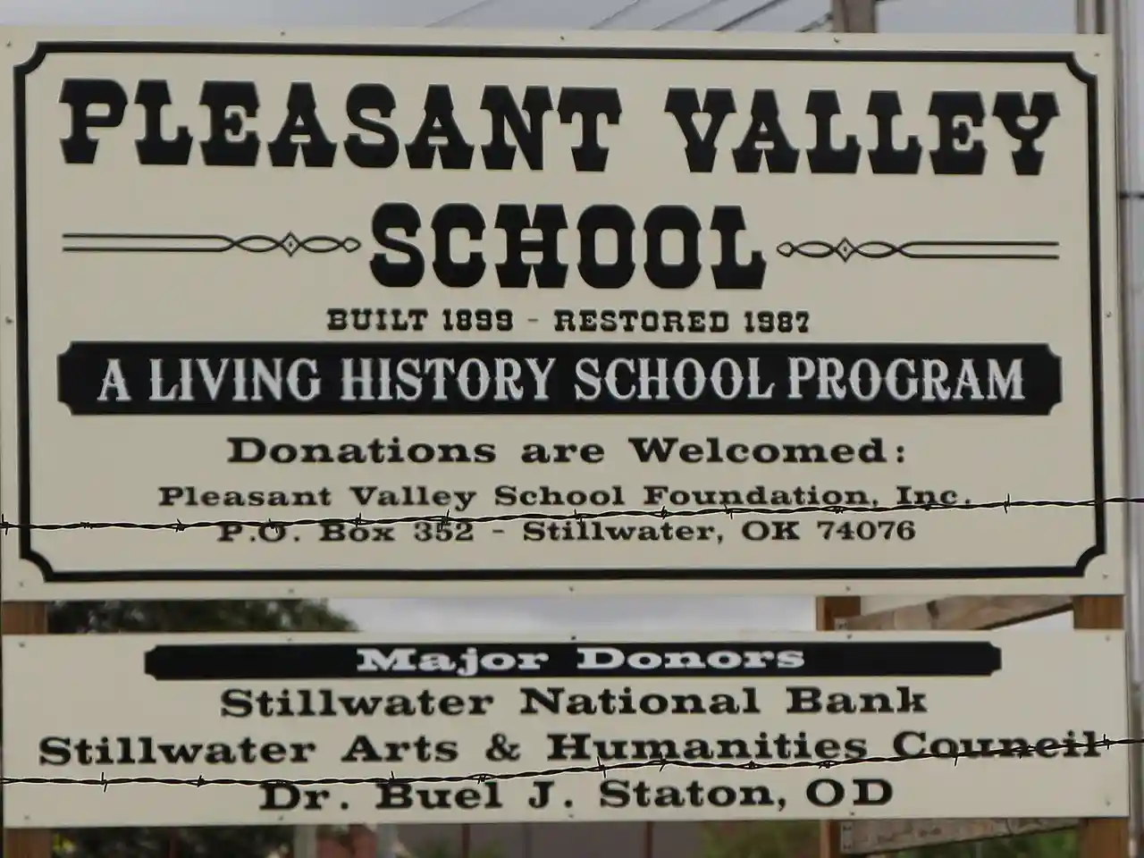 The Pleasant Valley School building is an example of a one-room country school that was common throughout Oklahoma during the late 1800s and early 1900s. The building was built in 1899 and continued to function as a one-room school until 1941. It remains the only extant one-room, frame school building in Payne County. It is one of the very few in Oklahoma still located on its original site and still playing the role of an educational and social center. Read more on Wikipedia