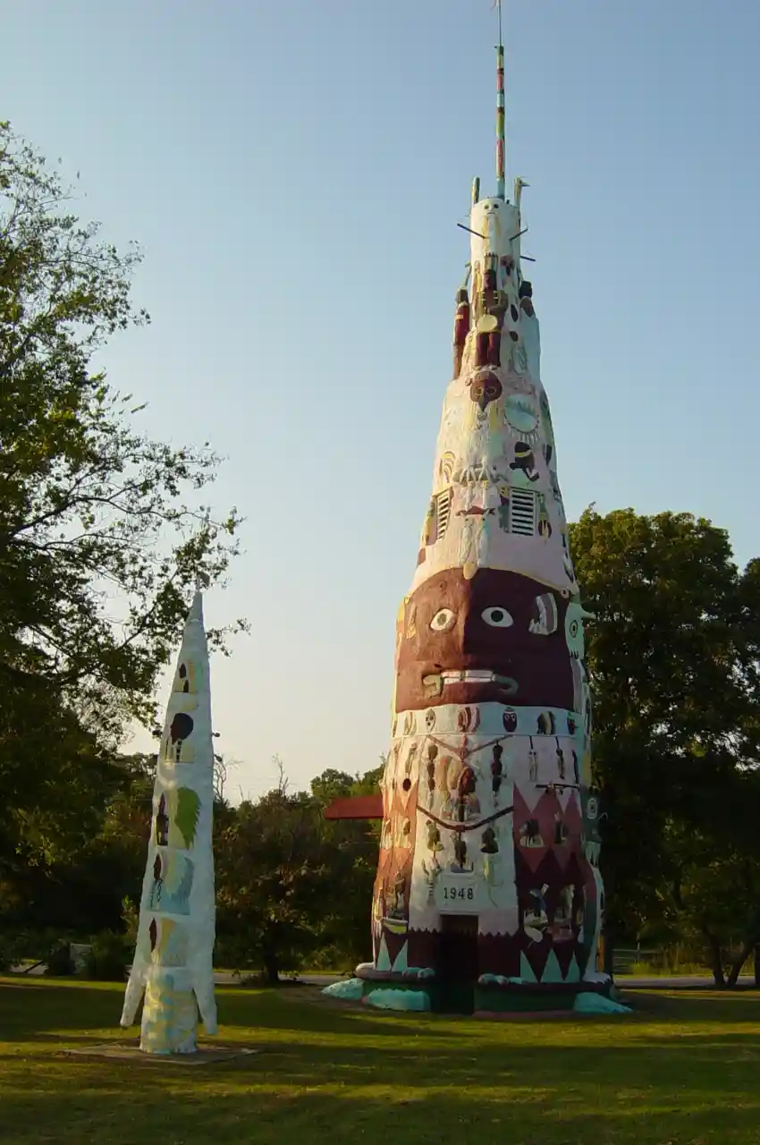 Ed Galloway's Totem Pole Park consists of eleven objects and one building on 14 acres (57,000 m²) in Rogers County, in northeastern Oklahoma. The park is ten miles (16 km) north-east of Claremore and is located 3.5 miles (6 km) east of historic U.S. Route 66 and Foyil. It was added to the National Register of Historic Places on March 30, 1999. The park is now owned and operated by the Rogers County Historical Society. The park's main totem pole is billed as the "World’s Largest Concrete Totem Pole."Covington, Hannah. "Childhood friends, artists bring color back to historic totem pole," Tulsa World, 30 July 2015; Accessed 30 July 2015. Read more on Wikipedia