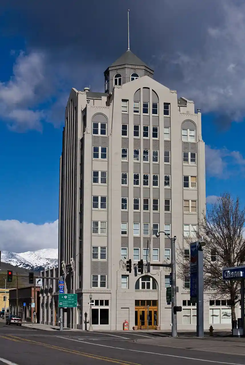Baker City Tower or Baker Tower (originally Baker Community Hotel, then Baker Hotel) is the tallest building east of the Cascade Range in the U.S. state of Oregon, located in Baker City. It was constructed in 1929 in the Art Deco style and is nine stories high. It is part of the Baker Historic District and listed in the National Register of Historic Places. It was designed by the Portland office of architectural firm Tourtellotte & Hummel. The general contractor was John Almeter of Portland and the roofing contractor was Cook & Emele of Baker City. Read more on Wikipedia