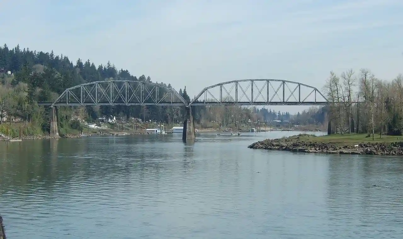 The Lake Oswego Railroad Bridge (also known as the Union Pacific Railroad Bridge at Lake Oswego and formerly as the Southern Pacific Railroad Bridge at Lake Oswego) is a truss railroad bridge that spans the Willamette River between Lake Oswego, Oregon and Oak Grove, Oregon. Owned by the Union Pacific Railroad, it is currently leased by the Portland and Western Railroad and carries the Milwaukie branch. Read more on Wikipedia