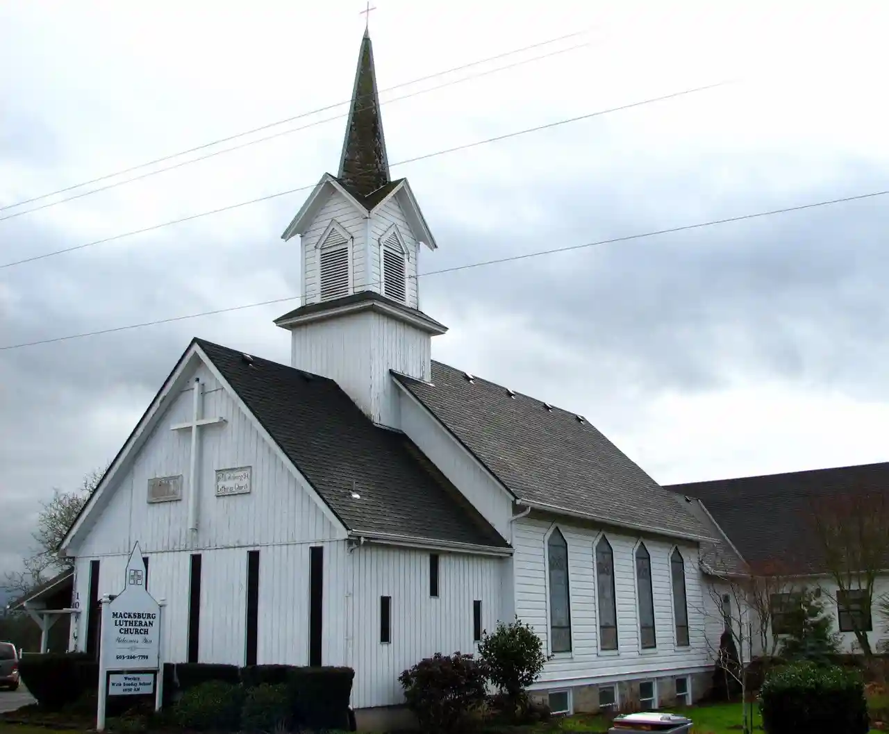 Macksburg Lutheran Church is a historic Lutheran church located in Canby, Oregon, United States. The church was built between 1892 and 1894, in order to serve the needs of German-speaking immigrants from Germany and Austria. Historically, the church offered sermons and Sunday school in both the German and English languages, on an alternating basis. Read more on Wikipedia