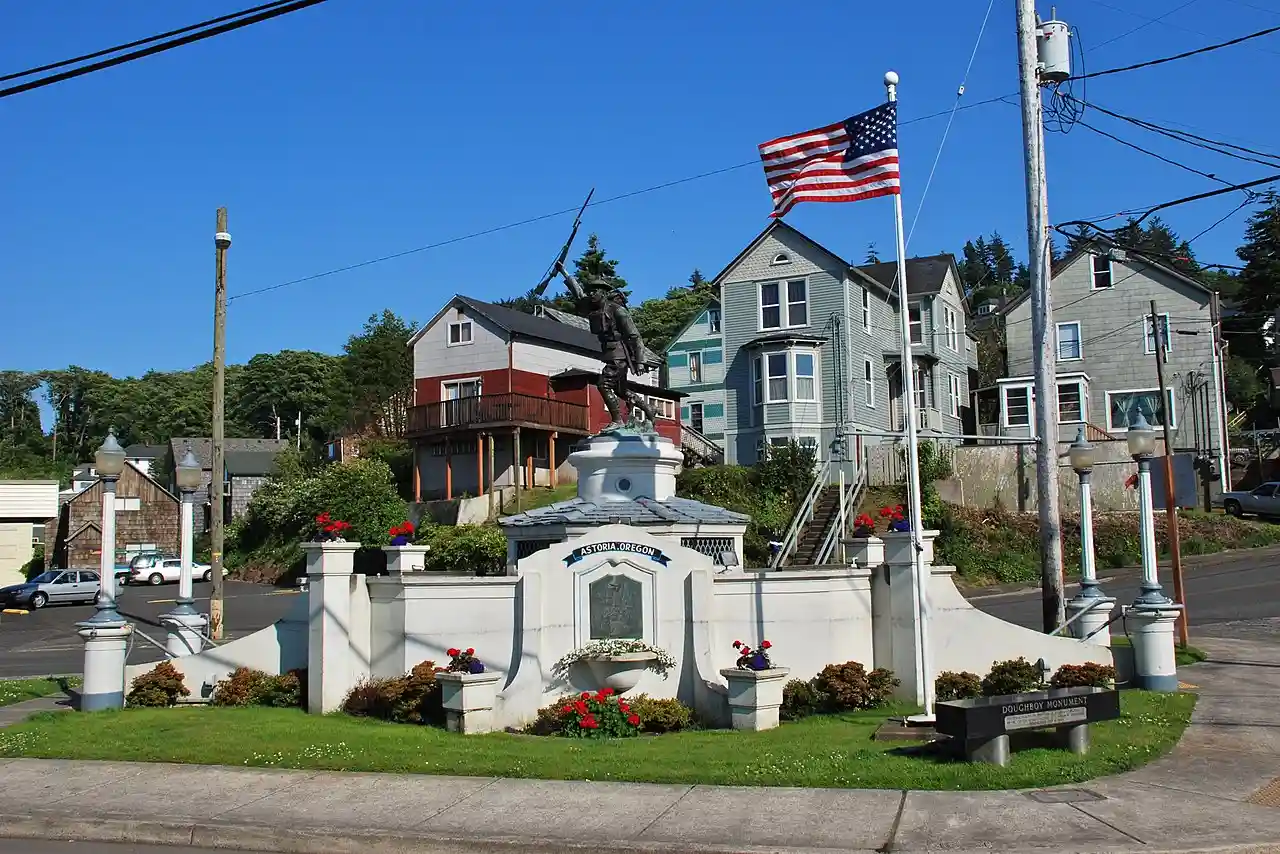 The Astoria Victory Monument, also known as the Doughboy Monument or Soldiers' Monument, is a monument located in Astoria, Oregon, in the United States. It is listed on the National Register of Historic Places. The concrete, Spanish Revival monument designed by Charles T. Diamond was constructed in 1926, incorporating a cast of a sculpture by John Paulding. The structure was recognized individually by the National Register of Historic Places in 1984 and as part of the Uniontown–Alameda Historic District in 1988. Read more on Wikipedia