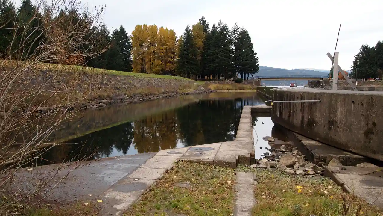 The Cascade Locks and Canal was a navigation project on the Columbia River between the U.S. states of Oregon and Washington, completed in 1896. It allowed the steamboats of the Columbia River to bypass the Cascades Rapids, and thereby opened a passage from the lower parts of the river as far as The Dalles. The locks were submerged and rendered obsolete in 1938, when the Bonneville Dam was constructed, along with a new set of locks, a short way downstream.Columbia River History, Northwest Power and Conservation Council. Accessed January 11, 2008. Read more on Wikipedia