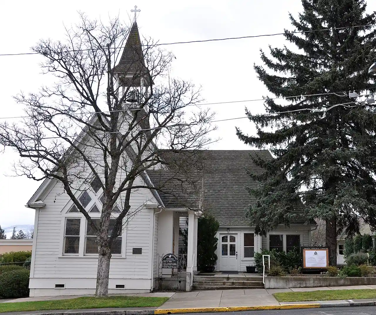 Trinity Episcopal Church is a historic Episcopal church at 44 N. 2nd Street in Ashland, Oregon. It is the oldest church in Ashland. Construction began in 1894 and was completed in 1895. Its design was based on drawings by local builder W. J. Schmidt. Built in the Gothic Revival style, it features a pitched gable roof, a pointed west-facing window, a gabled south-facing porch, and a trussed rafter roof. The church was added to the National Register of Historic Places in 1984. Read more on Wikipedia