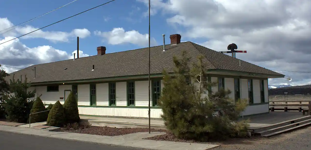 Metolius station, also known as the Oregon Trunk Passenger and Freight Station is a historic railway station located on Washington Street at the foot of Sixth Street in Metolius, Oregon. The station was built in 1911 to serve passenger and freight traffic along the Oregon Trunk Railway, which provided a railway connection for towns in central Oregon. The station building has a Stick Style design and was built to a standard station plan used by the line. As the railroad entered a canyon on the Deschutes River near Metolius, it became an important station on the line, as its railway yard housed the pusher locomotives needed to help trains out of the canyon. The railway opened up previously inaccessible land to homesteaders; some of these homesteaders settled in the Metolius area, while others traveled further down the line to Redmond and Bend. The station closed in 1983; by then it served the Burlington Northern Railroad, which sold the building to the city of Metolius the next year. Accompanied by photos. Read more on Wikipedia